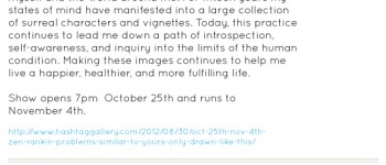 October 14, 2012 by adminWith the upcoming show from Andy Kittmer scheduled for the end of January, we’re offering up 2 exclusive prints from his upcoming show as a lead-up to the opening night! “Fisher of Men”, and “The Killing Lights” can be purchased through the gallery for $40 per 12″x16″ print. Andy joins #Hashtag artist Laura Thipphawong who […]