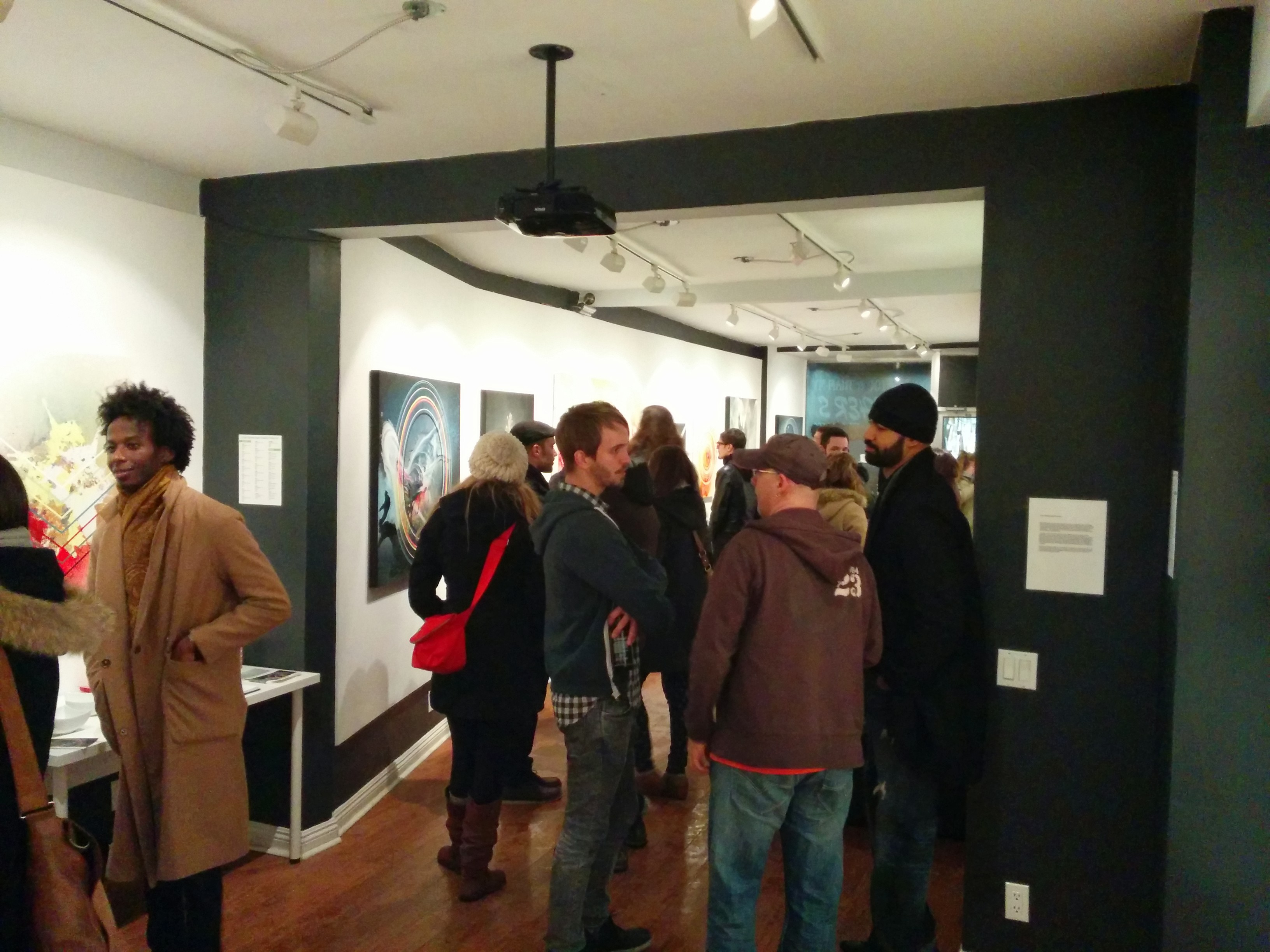 January 10, 2014 by adminWe kicked off 2014 right!! January 9th saw the opening reception for Ben Sellick’s new contemporary abstract collection: “Come Together (paper & plastic)”, and we were joined by the artist himself, as well as a full gallery of well-wishers, and art lovers all night long!